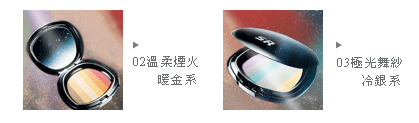 霓彩修容蜜粉餅 批號:A (顏色:02溫柔煙火暖金系) 批號:B (顏色:03極光舞紗冷銀系) |