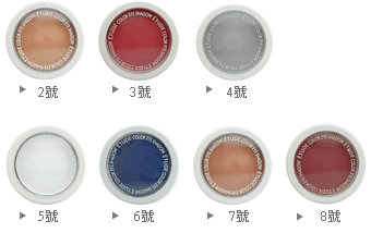 O2眼影 批號:A (顏色:2號) 批號:B (顏色:3號) 批號:C (顏色:4號) 批號:D (顏色:5號) 批號:E (顏色:6號) 批號:F (顏色:7號) 批號:G (顏色:8號) |