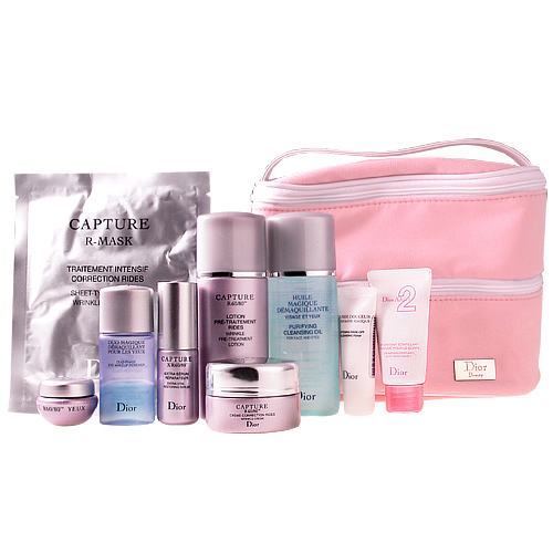 DIOR-新逆時活膚精華液10ml DIOR-新逆時活膚乳霜15ml DIOR-新逆時活膚化妝水50ml DIOR-白茶親膚潔顏油50ml DIOR-新逆時活膚眼霜5ml DIOR-新逆時活膚密集精華面膜20ml DIOR-白茶親膚潔顏乳10ml DIOR-雙效眼妝卸妝液15ml DIOR-癮誘甜心亮采潤膚露20ml DIOR-流蘇粉紅立體雙層化妝包 (17.5cm X 14cm X 7cm) |