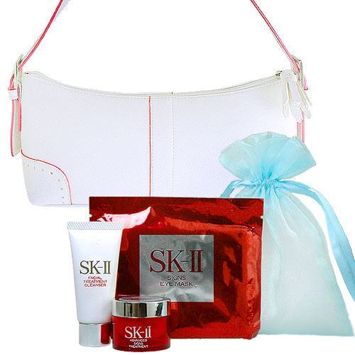 SKII高效多元活膚霜15g,市價640 SKII全效活膚眼膜一對,市價150 SKII柔膚潔面乳20g,市價185 早春真皮肩提兩用包,27*13*8公分 獨家好禮,市價780 |