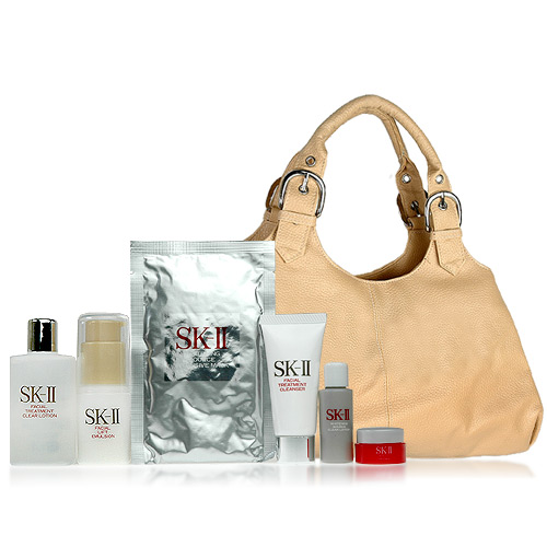 ‧亮采化妝水40ml ‧晶緻活膚乳液30g ‧高效多元活膚霜2.5g ‧晶透煥白精露11ml ‧晶透煥白面膜1片 ‧柔膚潔面乳20g ‧駝色淑女手提包 :提把的扣環流行感佳~ 十分好搭配的顏色,人造皮革壓紋細緻高21公分(含提把),寛40公分,底厚10公分內為3隔層,2個磁鐵扣層,中間拉鍊為主袋,內有手機與小拉鍊內袋 |
