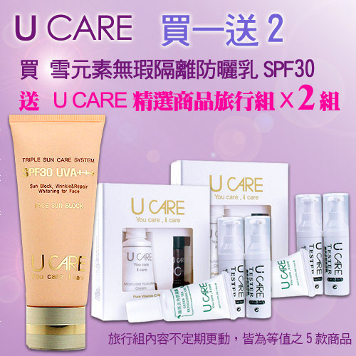 已下架 | DP100037 | 品牌明星品 | U-CARE雪元素無瑕隔離防曬乳SPF30-買一送二 | 買一送二(送旅行組) | 1280 | 1024 | 1組 |