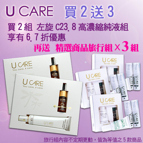 已下架 | DP100038 | 品牌明星品 | U-CARE左旋C23.8高濃縮純液組-買2送3 | 買2送3(送旅行組) | 9000 | 6000 | 1組 |