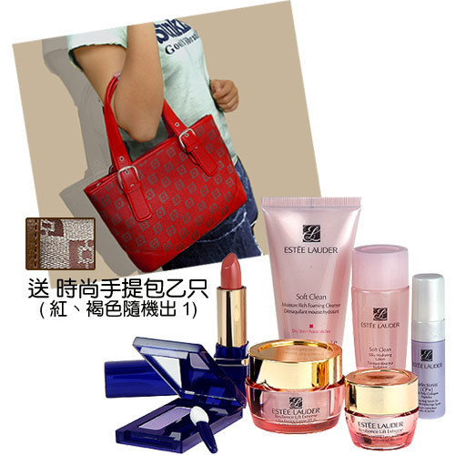 Estee Lauder純色冰紛色眼影 - 0.8g Estee Lauder純色晶亮持久唇膏 - 3.6g Estee Lauder柔絲煥采化妝水 - 30ml Estee Lauder柔絲煥采潔面乳 - 50ml Estee Lauder瞬間無痕智慧膠原抗皺精華 - 4ml Estee Lauder彈性膠原活膚眼霜 - 5ml Estee Lauder彈性膠原活膚霜 - 15ml 贈品: 格紋時尚手提包一只 尺寸(不含提把) - 35cm X 22 cm X 11cm |