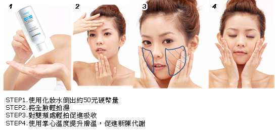 於化妝水後,取適量均勻塗抹於臉上,輕柔按摩至完全吸收即可。