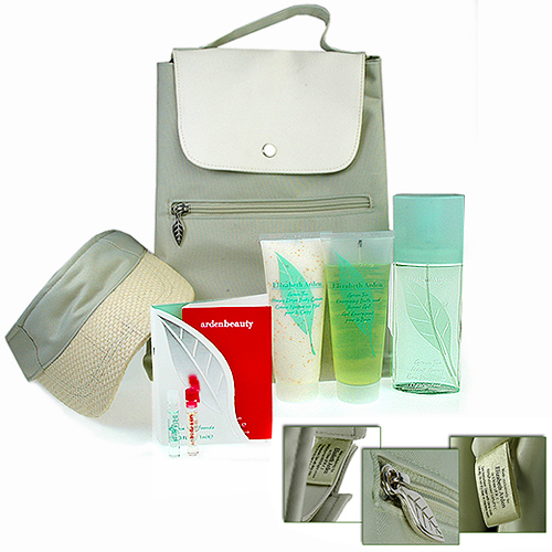 雅頓綠茶香水100ml,市價1650 雅頓綠茶蜜滴舒體霜100ml 雅頓綠茶沐浴膠100ml,市價380 雅頓夏姿遮陽帽(具有原廠LOGO),市價480 雅頓夏姿雙肩手提兩用被包 兩側具有金屬釦調節束口大小。前方具有原廠LOGO圖 騰拉鍊。提包的前方皮革面,30*22*11公分,市價780 雅頓紅門針管小香 雅頓綠茶針管小香 |