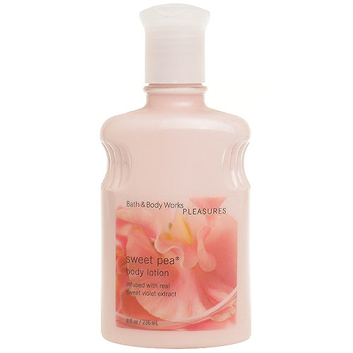 已下架 | G0001244 | BATH BODY WORKS | 甜豌豆身體乳液 | 920 | 520 | 236ml | 結合紫羅蘭和甜豌豆花的氣味,帶給妳靈感及敏銳的感受,彷彿置身於人間天堂。 | 每日潔膚後,取適量塗抹於全身肌膚,特別注意腿部、膝概、手肘等易乾燥部位。 | |||