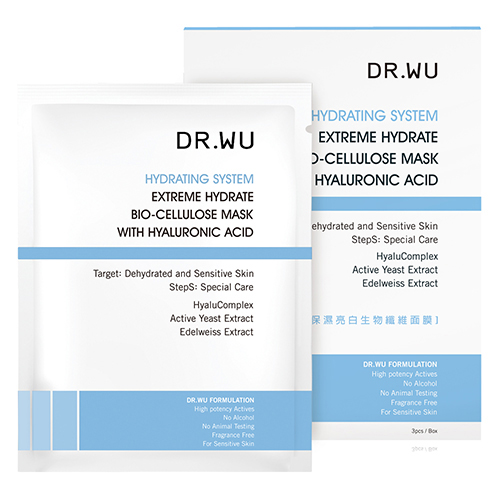 每週使用2~3次,潔膚後撕開包裝取出內容物,展開後撕去內層白色襯布,將略呈透明狀的生物纖維面膜敷貼於臉上適當位置後,再撕去外層白色襯布。敷用約20~30分鐘取下,並輕輕按摩至精華液完全滲透至皮膚,接續使用DR.WU保養系列。