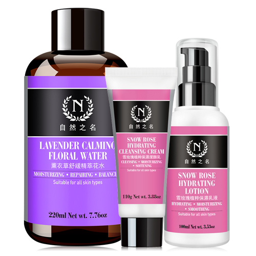 使用步驟:雪玫瑰植粹保濕潔顏乳→薰衣草舒緩精萃花水→精華液→雪玫瑰植粹保濕乳液→防曬隔離