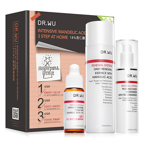 使用步驟:卸妝、清潔→杏仁酸溫和煥膚精華→化妝水→精華液→乳液→防曬隔離