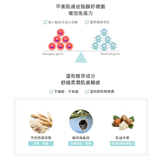 選用有效潔膚成分,使提升肌膚的潤澤光透感,絲滑質地溫和不易刺激,能洗去臉部基礎彩妝及污垢。
