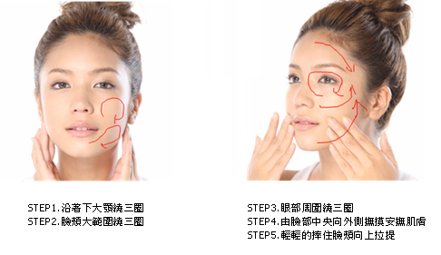 塗抹乳液後,取適量以順時針方向塗抹於眼周,可輕輕按壓眼周,促進皮膚吸收。