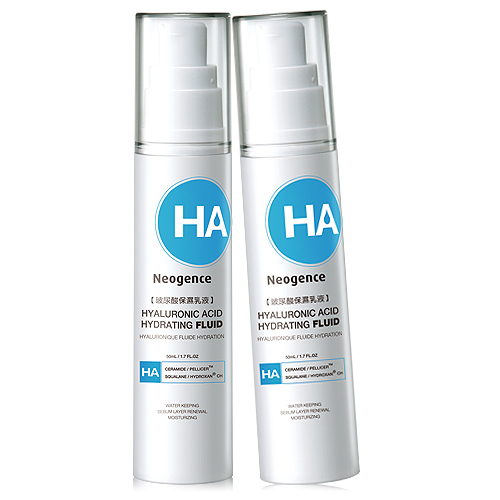 Neogence霓淨思玻尿酸保濕乳液,精心調配低含油量的清爽不黏膩配方,低刺激性,不阻塞毛孔、不易致粉刺。快速吸收後可幫助肌膚修護皮脂層,長時間鎖住水分,提升保濕能力。適合中偏油性肌膚,或在春夏季時皮脂量較大時使用。精選成分『長效複合保濕配方HYDROXAN® CH』可防護環境中不穩定的乾濕度變化,提供穩定保濕力。『高效鎖水因子PellicerTM』能平滑肌膚,配合滋潤修護成分『神經醯胺+ 精純橄欖精華』,深層潤澤乾燥肌膚,鎖住水分,減緩水分由內再度蒸發散失。提升肌膚長時間鎖水能力,同時加強肌膚對外在環境的防護力。