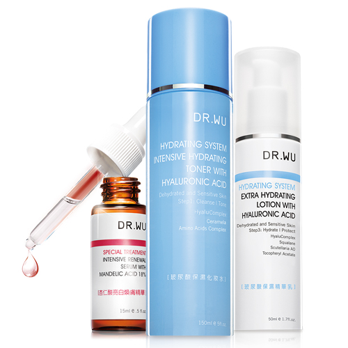 使用步驟:卸妝、清潔→杏仁酸亮白煥膚精華→化妝水→玻尿酸保濕精華液→乳液面霜→防曬隔離