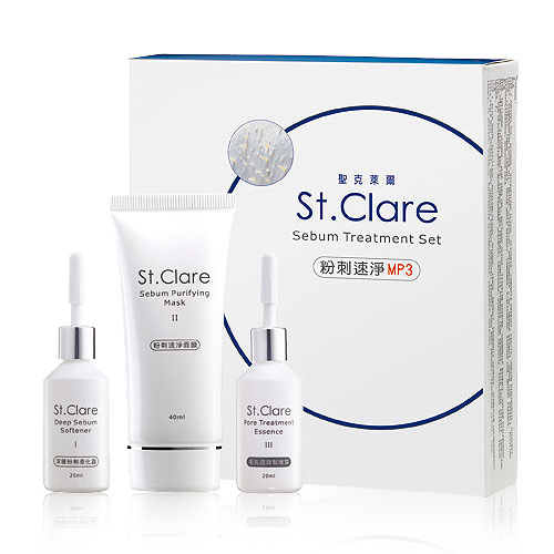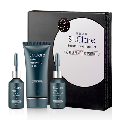 天氣的冷熱驟變及飄在空氣中的灰塵、微小浮粒、廢氣油煙經常無情的沾黏在皮膚上,容易阻塞毛孔,造成出油、粉刺生成及堆積。St.Clare竹炭控油速淨MP3,添加吸附力超強的竹炭配方,黑色晶亮的泥狀竹炭面膜,容易塗抹延展均勻,能緊密貼合毛孔,完全吸附和拔除粉刺、多餘油脂和老廢角質進而調解油脂分泌、深度清除毛孔污垢。待完全乾燥後撕除,拔除的粉刺根根分明看得見,毛孔瞬間清爽潔淨,肌膚光澤勻亮!