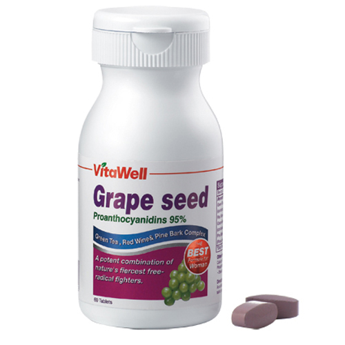 葡萄子萃取物OPCs(原花青素)是不可或缺的營養素。本品含OPCs葡萄子萃取物150mg、綠茶多酚350mg、紅酒萃取(含紅酒多酚)200mg、松樹皮多酚50mg,是青春常駐的最佳的組合。每日一錠,重現亮采風貌~