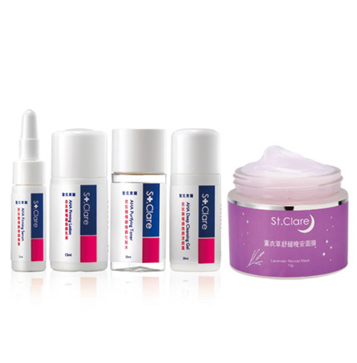 胜肽酸煥顏潔顏露→胜肽酸煥顏化妝水→胜肽酸煥顏精華→胜肽酸煥顏乳液→薰衣草修護水凝膜 |