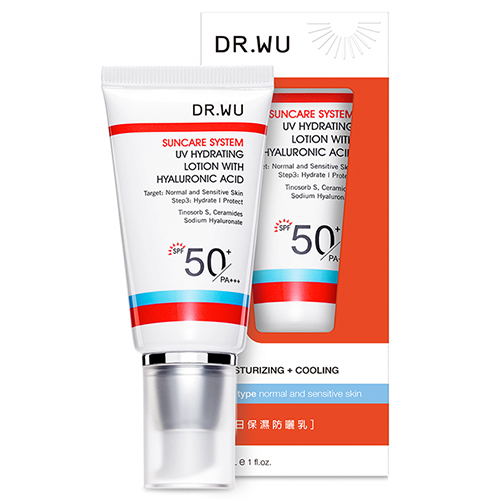 輕透型保濕防曬乳,獨特清爽水乳劑型,運用特殊防曬成分Tinosorb S,能有效阻隔UVA與UVB對肌膚的傷害,提供肌膚全方位的防護,玻尿酸及複合式分子酊,能立即保濕補水預防水分流失,使肌膚長效持水滋潤。
