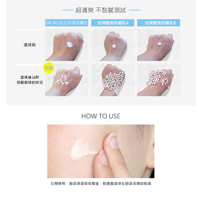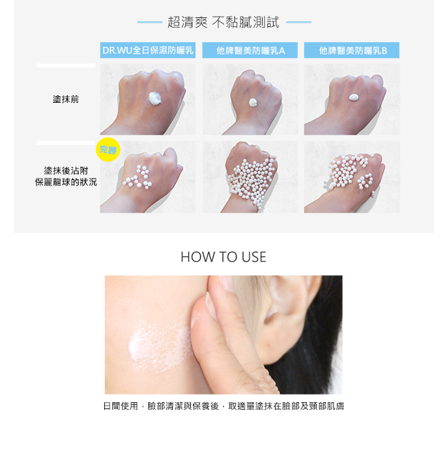 清爽的水乳劑型,不悶、不黏、不泛白,最舒服的防曬乳!